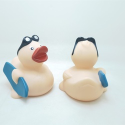 Sports Promotion Custom Yellow PVC Vinyl Rubber Duck Bath Toy for Kids Squeaky Ski Item